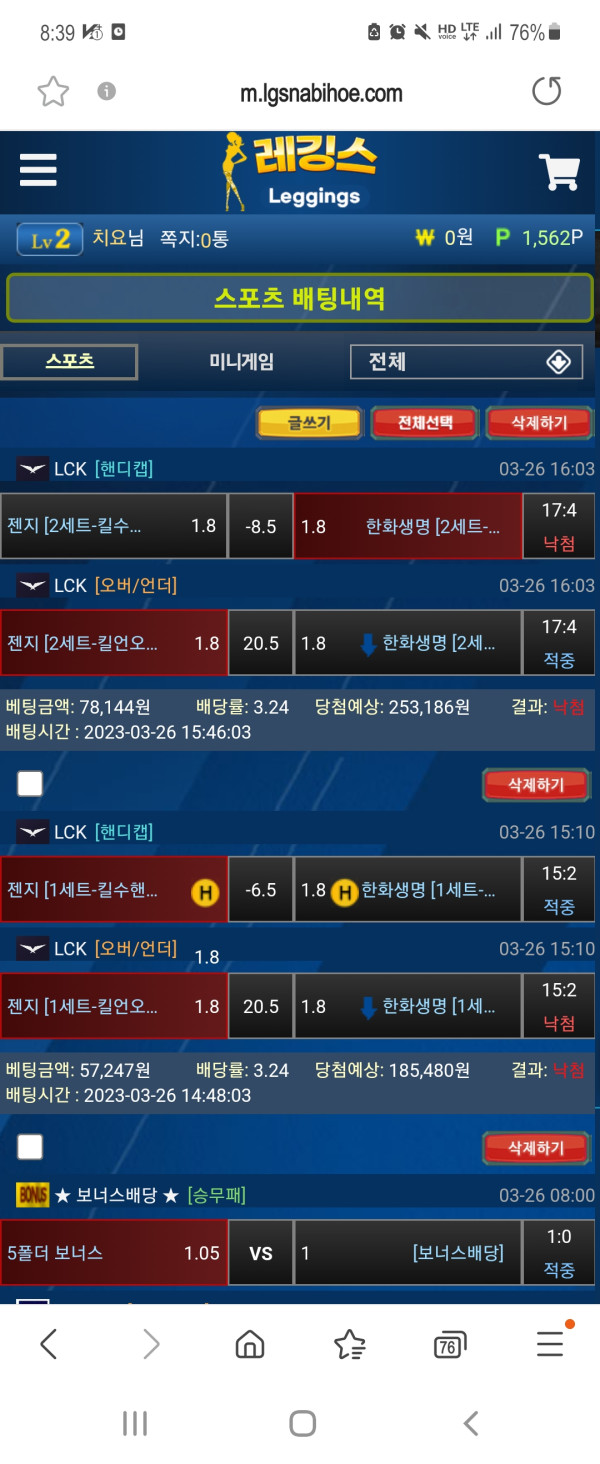 레깅스는 매일 돌발이벤트로 보너스포인트 15~20퍼 주고 있습니다