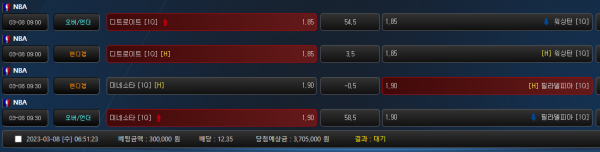1쿼부터 4쿼 배당 1.9배 진짜 좋네요
