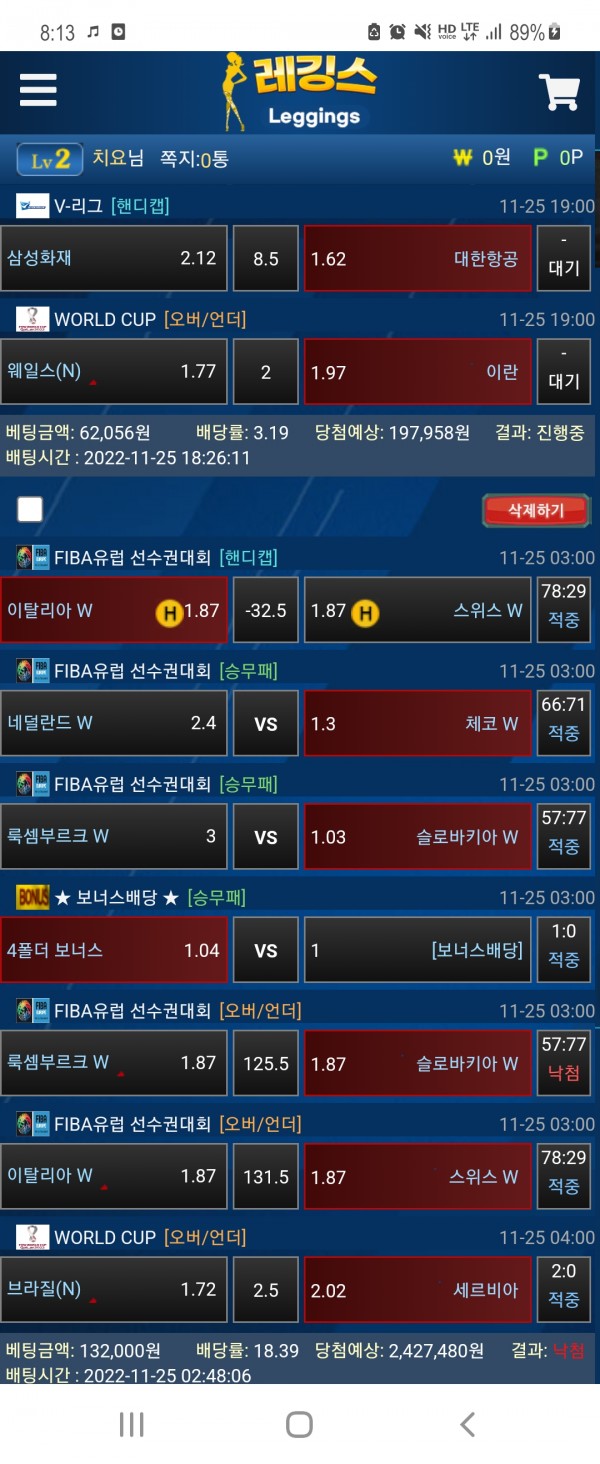 느바나 국내경기 농구 배구 모두 다양한 핸디 언오버