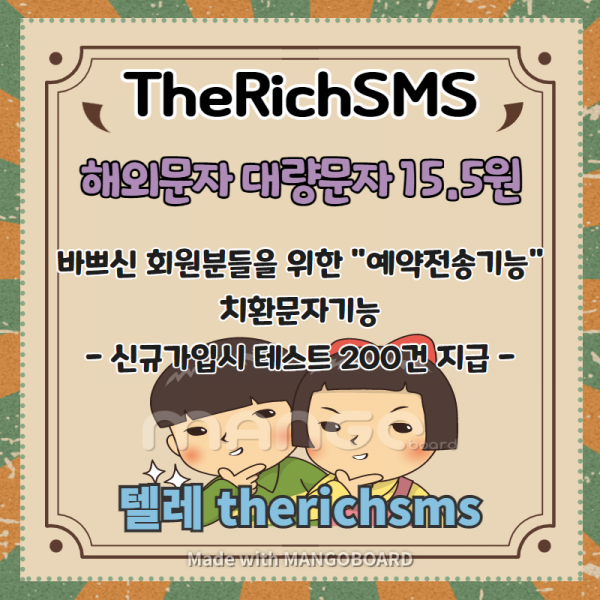 ✅☑️ 해외문자 대량문자 더리치SMS 15.5원 단가 이벤트☑️✅