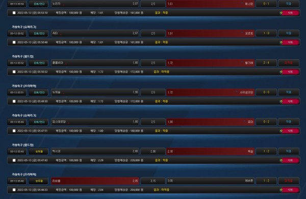 일반 축구보다 배당도 좋고 경기도 빨리빨리해서 자주 이용합니다