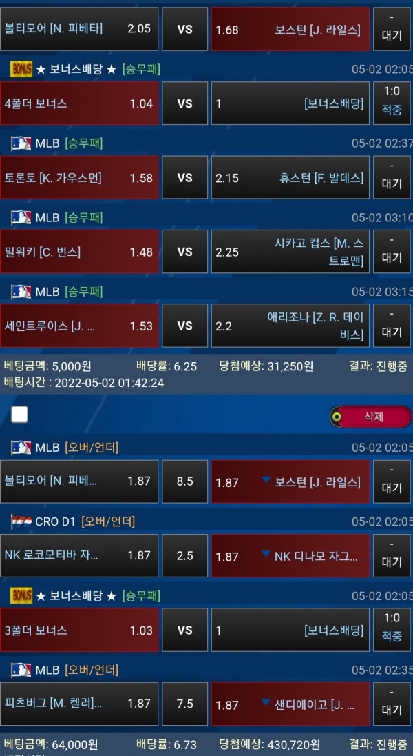 경기가 다 빨라서 그냥 찍었음!! 어제 적중하나 주셨으니