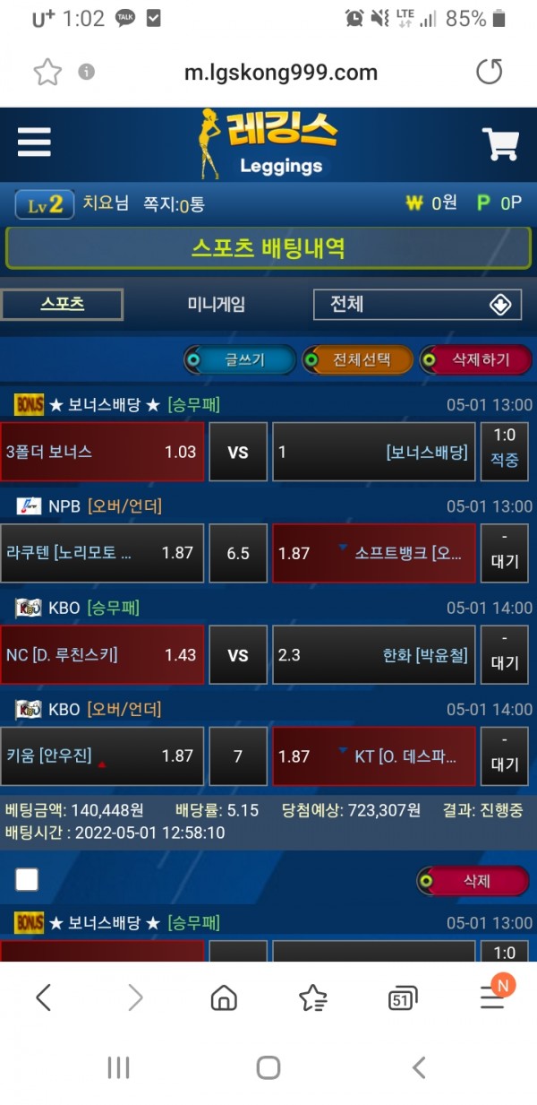 축구핸디 느바 핸디 언옵 다양하게 올라옵니다