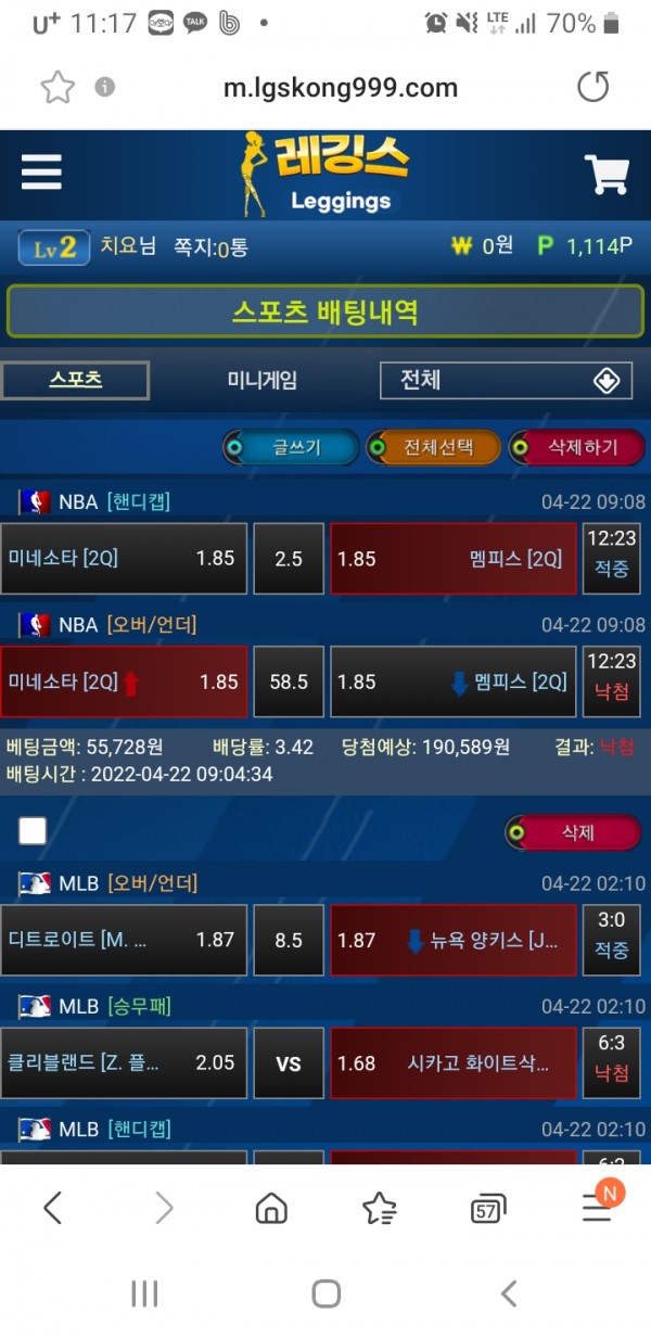 레깅스 장점은 빠른 경기업데이트 빠른 결과처리 빠른충환전