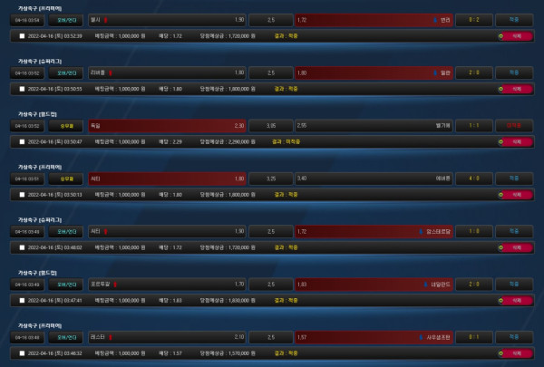 새벽에 잠깐 눈떠져서 배팅했는데 이게 웬걸? 연승했네요