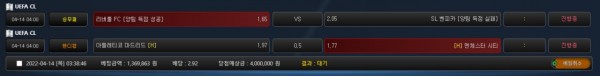 레깅스 챔스 배팅후기