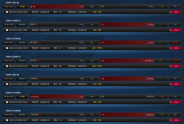 오늘같이 새벽축구 없는날은 이런 미니게임 배팅하기 좋습니다