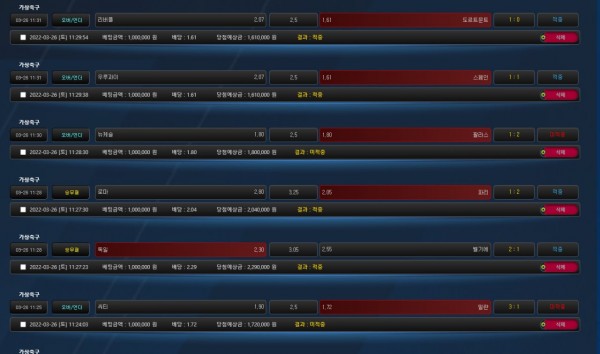 벳삼 축구 배당도 좋고 대충만 박아도 이득은 보는듯하네요