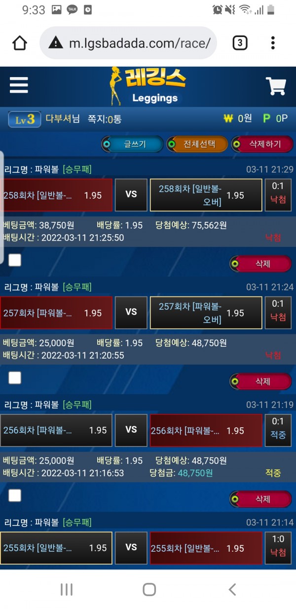 복수전 해보겠다고 6출 오링 4출 오링이네요