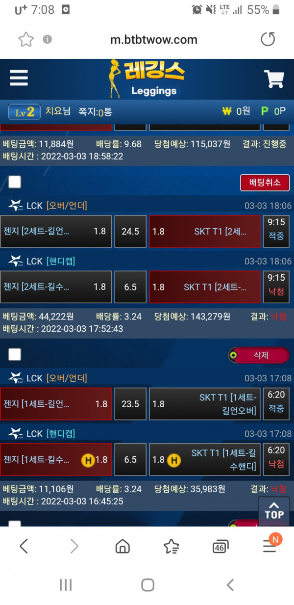 롤 티원 팬이라 티원경기는 항상 배팅하는데