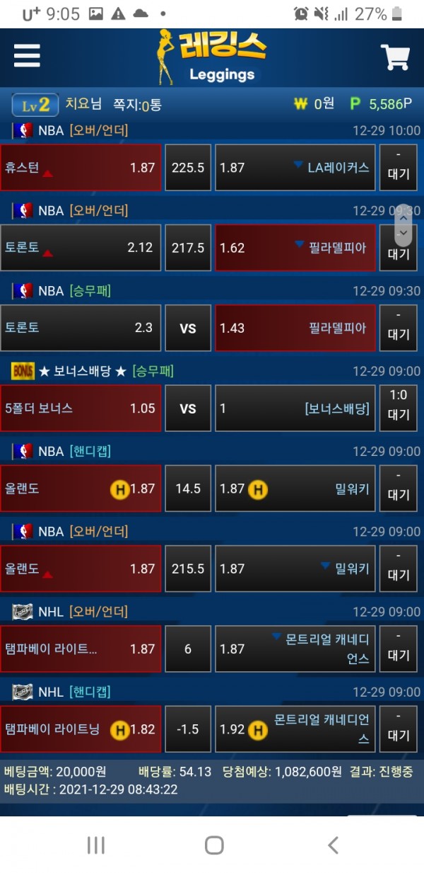 레깅스의 장점은 보다시피 핸디 언오버 점수대별로 배당이 달라서 좋아요
