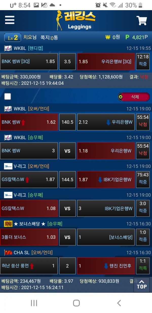 레깅스는 이미 핸디 언오버 배당 다 떳습니다