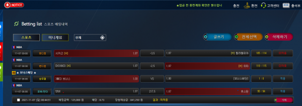 충환전 빠르고 경기종류도 많아서 재미나구요