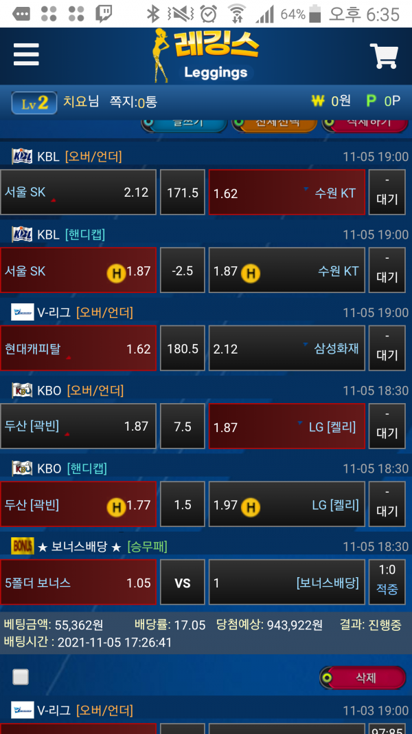 삼화는 셧아웃에 국야는 오늘 오버가 났네요 ㅠㅠ