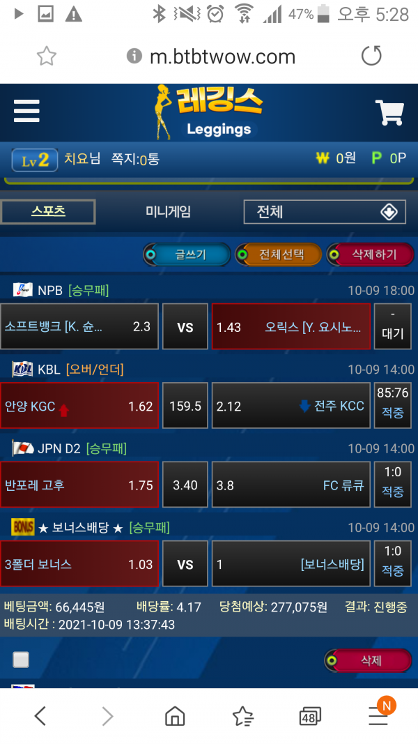 기준점 이나 핸디 모두 배당에 따라 자유롭게 있는 레깅스