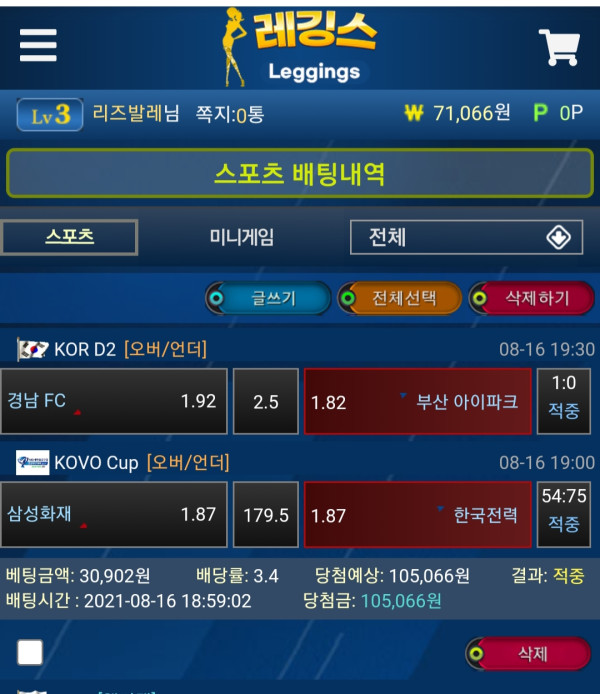 많은 이벤트와 빠른 충환전 레깅스에서 패자부활전으로 대박 노려봅니다