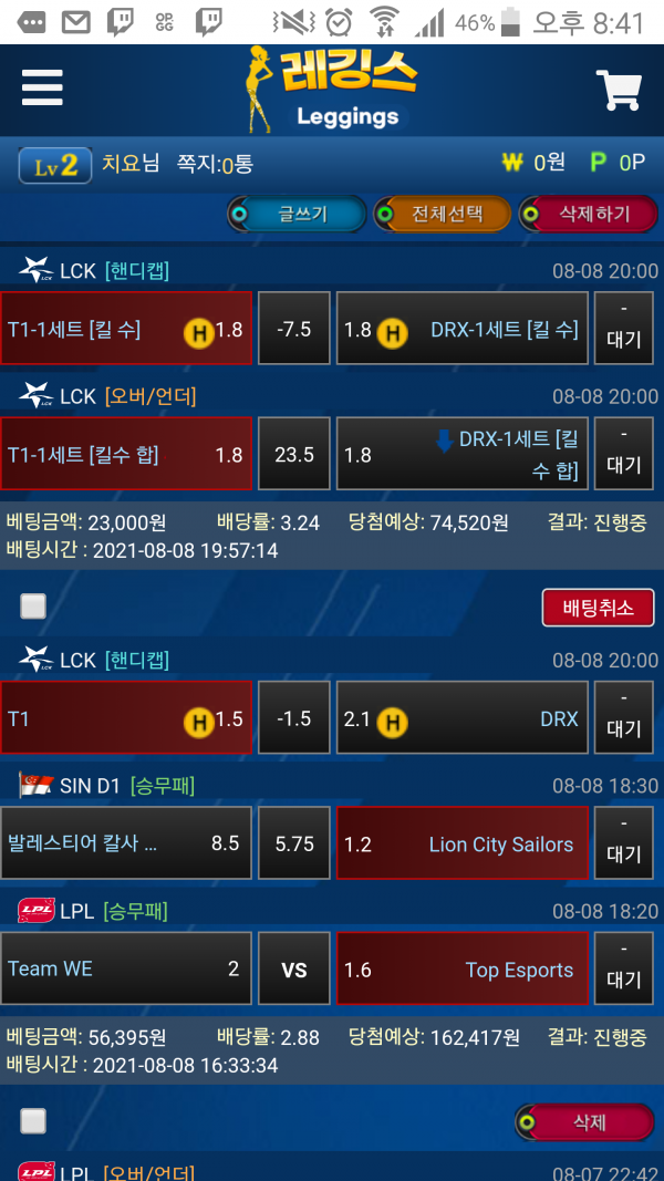 그래도 레깅스가 경기가 제가 본곳중 제일 빨리 올라오고