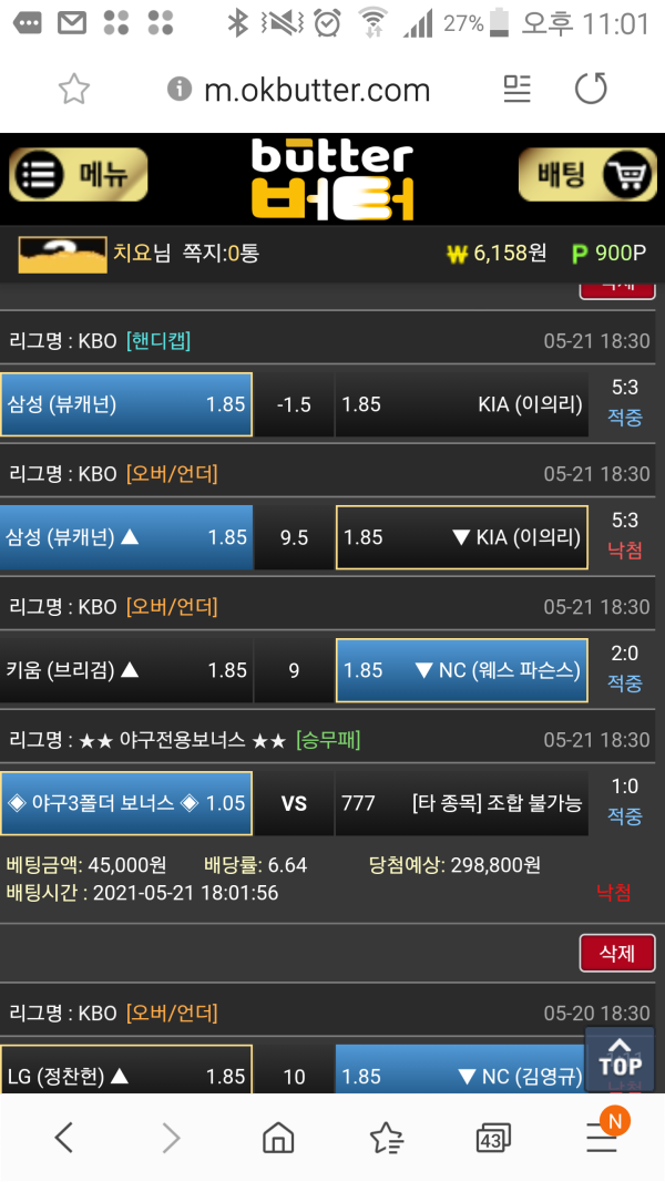 내일도 버터에서 즐거운 야구뱃을 다른사람들도 같이 햇음 좋겟다