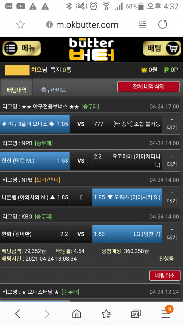 모든 경기 올라온다