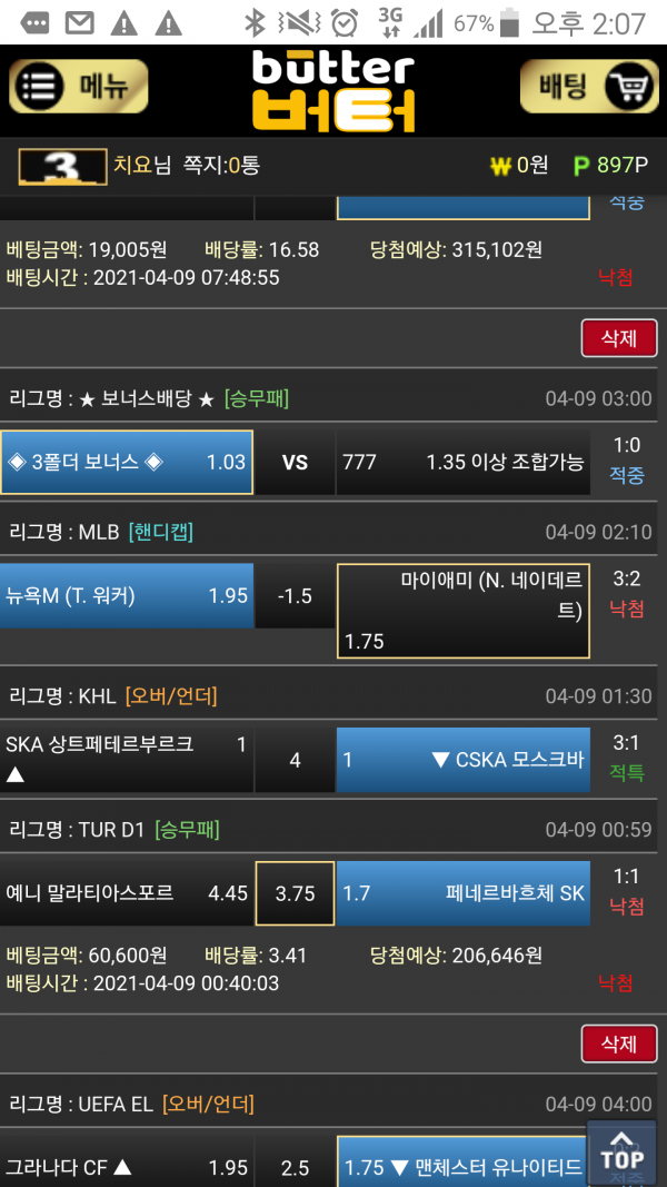야구 또한 다폴더로 상한금액도 높습니다