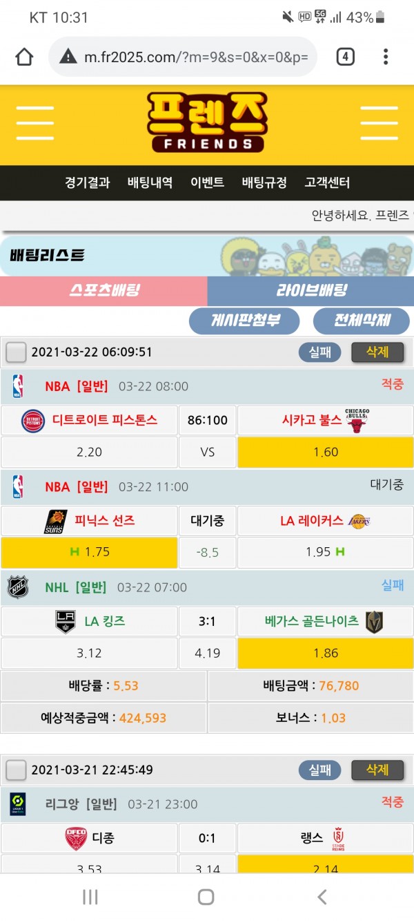 프렌즈 배팅후기입니다