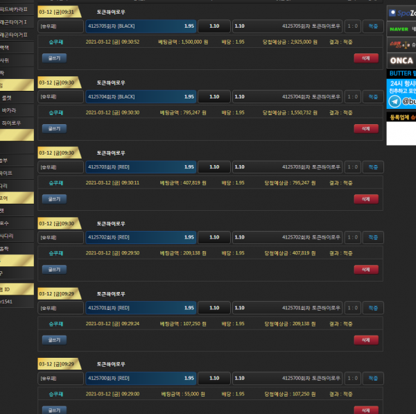 버터 하이로우 연승후기