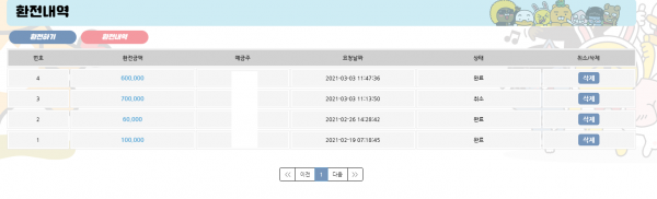 충전 환전 시스템은 환전은 5분이내로 스피드하게 환전되는거같고
