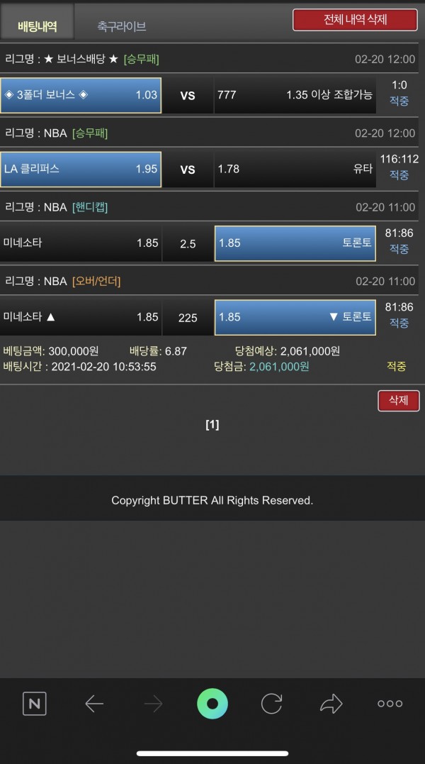 오늘 배팅내역은