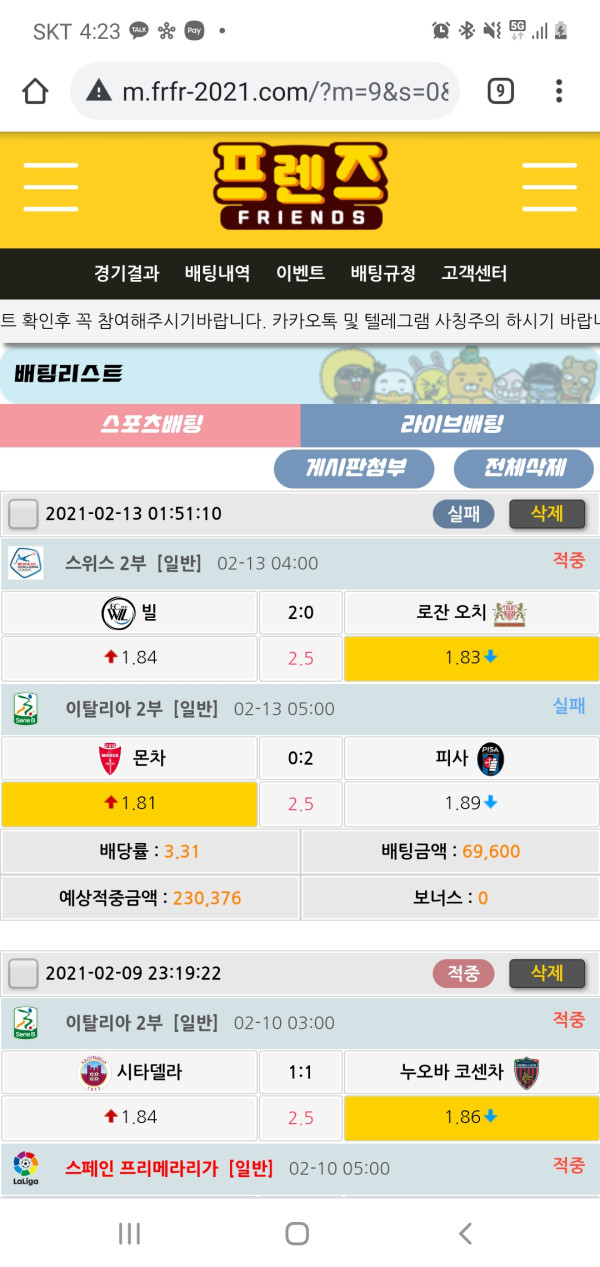 프렌즈후기 페이지 정보 작성자 마산구합처동 작성일21-02-13 16:22 조회277회 댓글0건 관련링크 목록 본문 오늘은 아쉽게 한폴이네요 허허.. 다들 설연휴 잘보내고 있나요?ㅎㅎ 프렌즈 이벤트 빵빵합니다 댓글목록 등록된 댓글이 없습니다. 목록