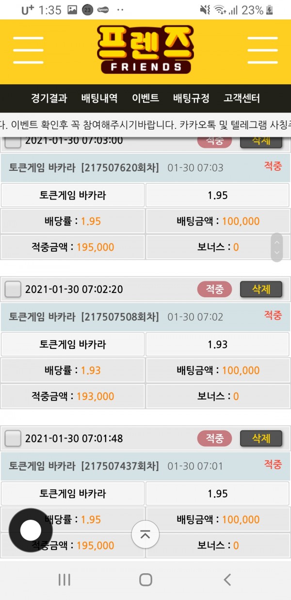 프렌즈 배팅 후기요