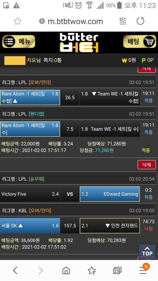 농구도 배구도 핸디나 언옵이 다양하게 책정되어 좋다