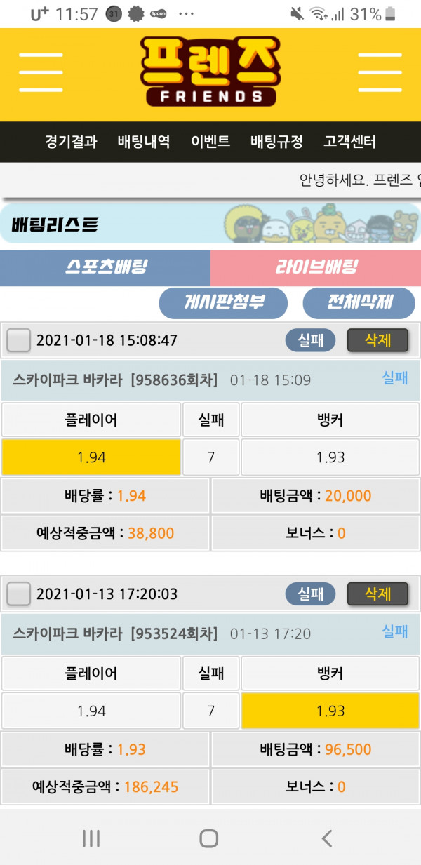 프렌즈 베팅후기2