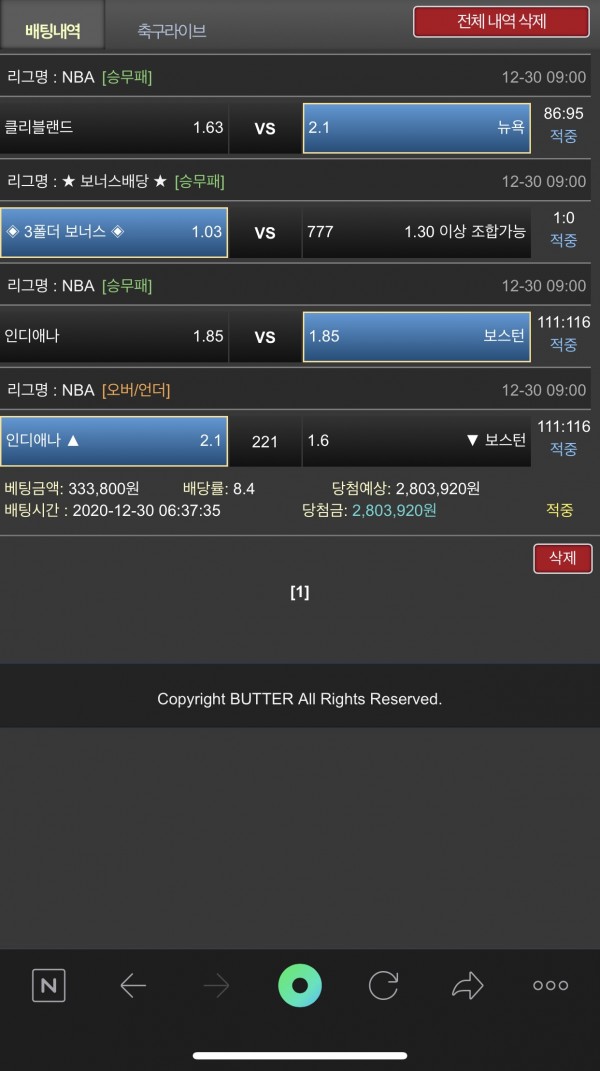 2020련 마지막이니 느바 배팅하고 자러가야지