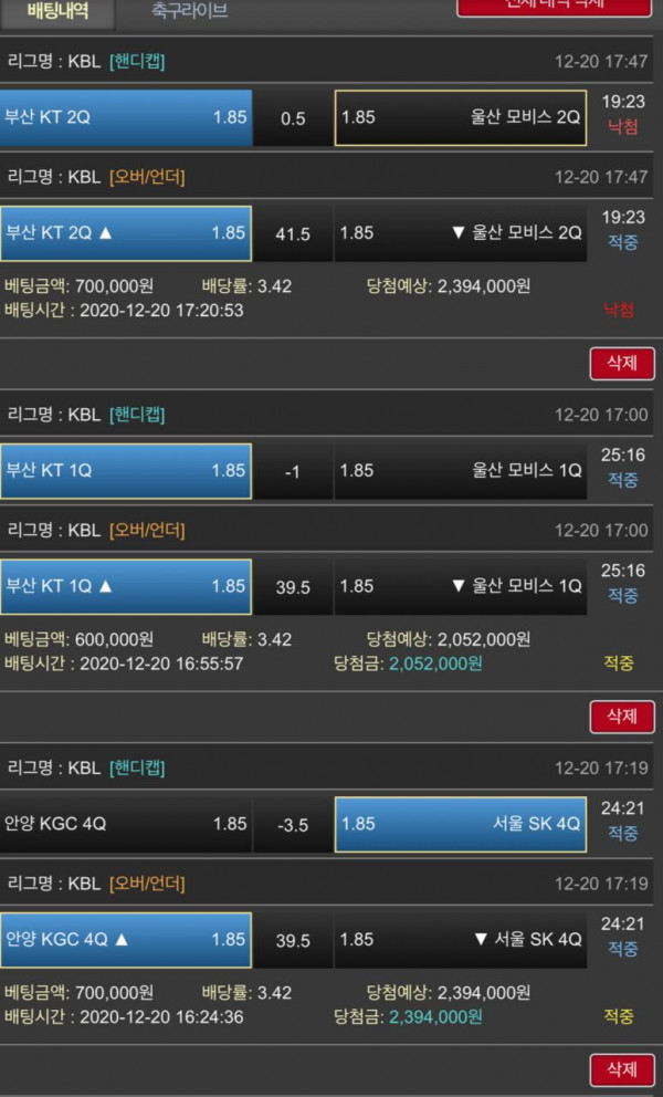 경기가 별로 없는 월요일이지만