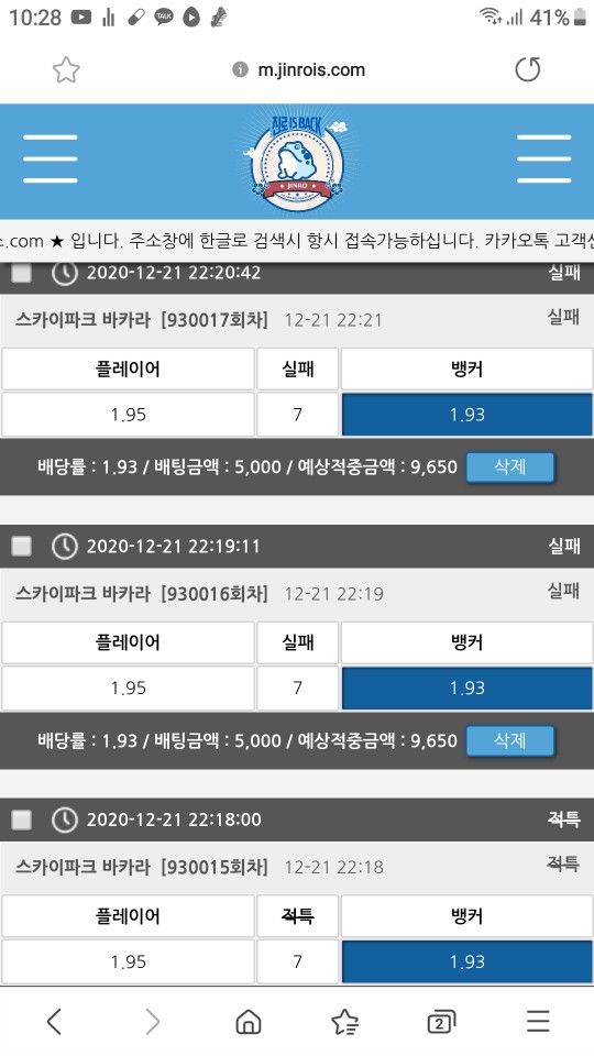 스카이바카라는 저랑 안맞나봐유... 맞추질 못하네유.