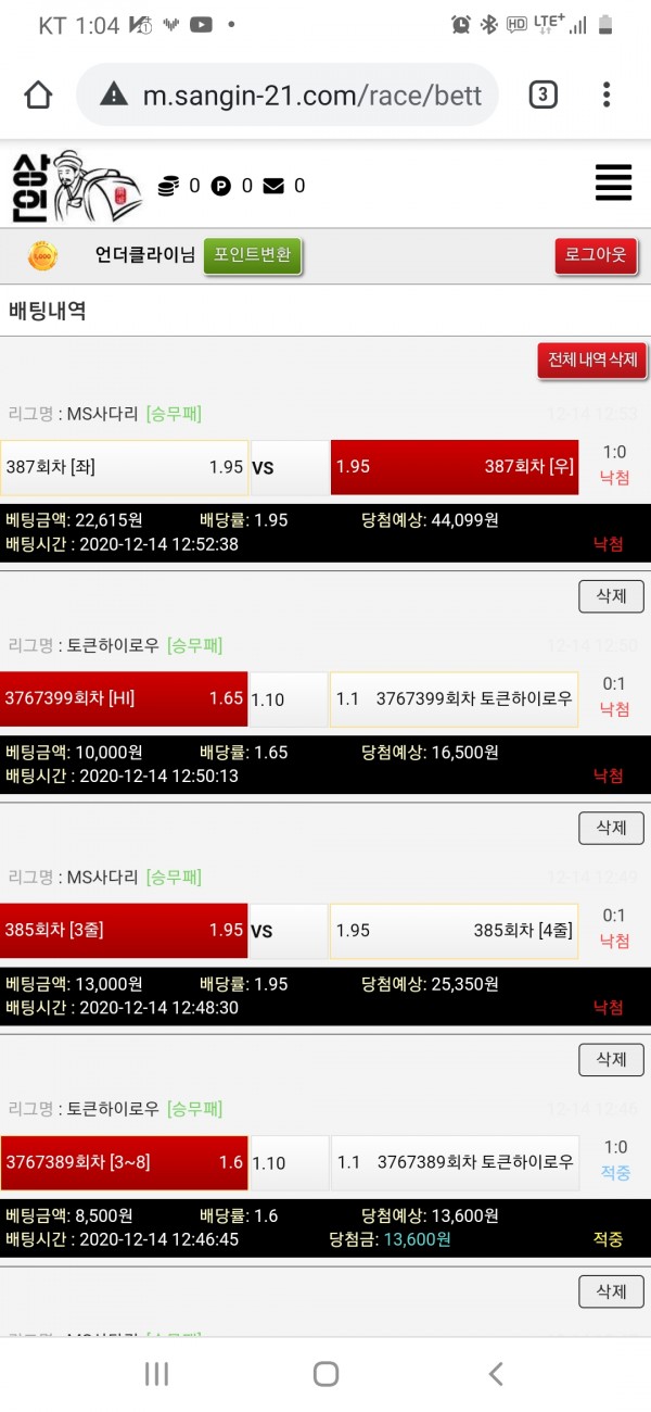 티웨이 [ 포인트 배팅후기 ]
