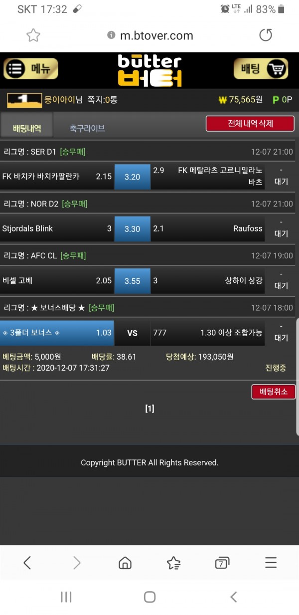 버터 참 이벤트도 많고, 보너스금액도 ㅎㅎㅎ