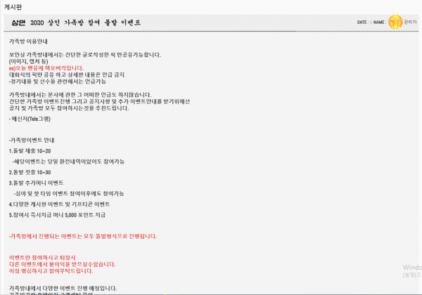 가족방이라는 곳에서도 이벤을 매일 합니다