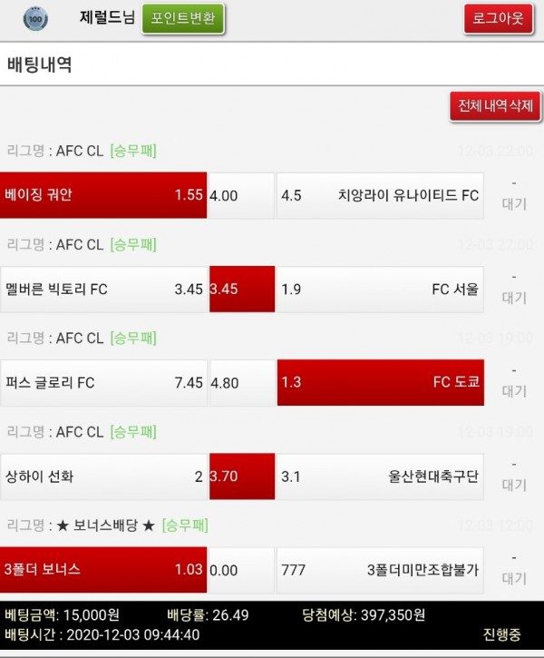 상인 후기. 삼만 꿀꺽. 페이지 정보 작성자 제럴드 작성일20-12-03 09:49 조회292회 댓글0건 관련링크 목록 본문 어제 유로파 다득점팀 맞추기에 당. 삼만원 꿀꺽.정말 이벤트가 무궁무진하군요... 아리가또~!!!! 댓글목록 등록된 댓글이 없습니다. 목록