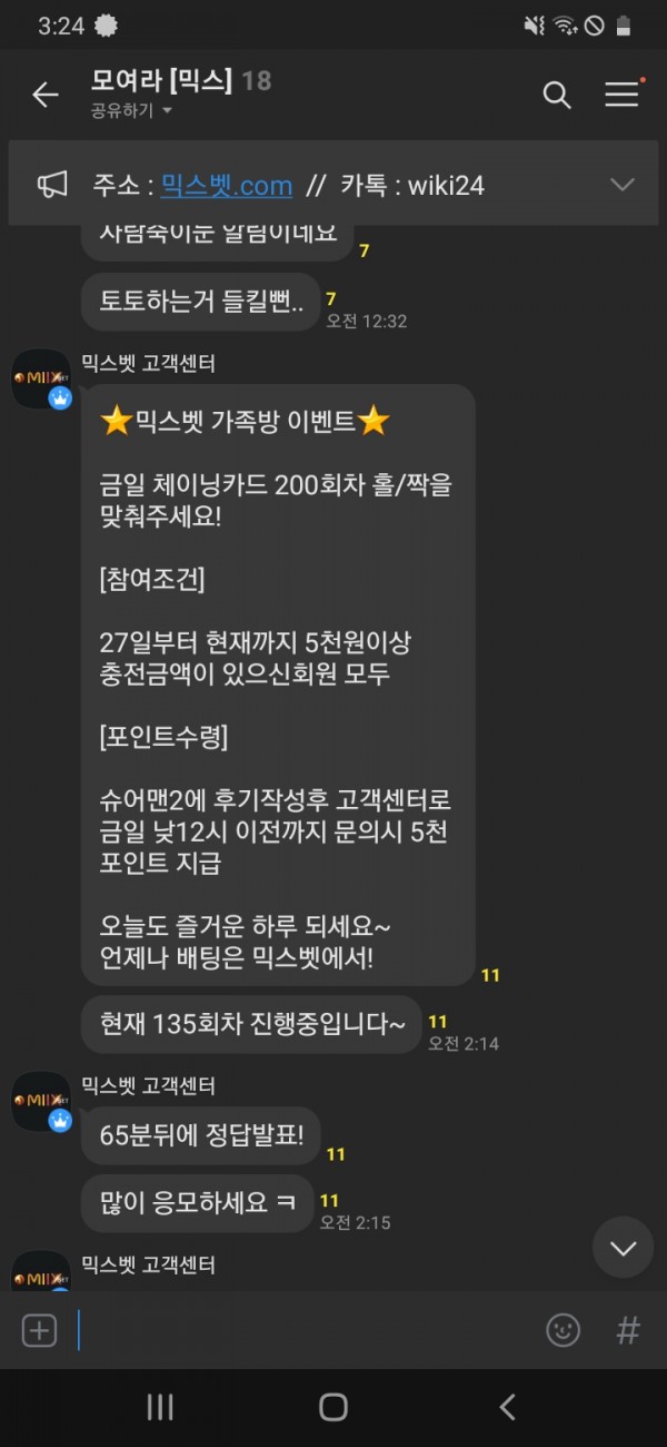 믹스벳 가족방이벤트 당첨을 축하드립니다