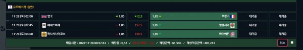 오늘 축구경기 별로 없어서 뭐배팅할까 들어가봤는데