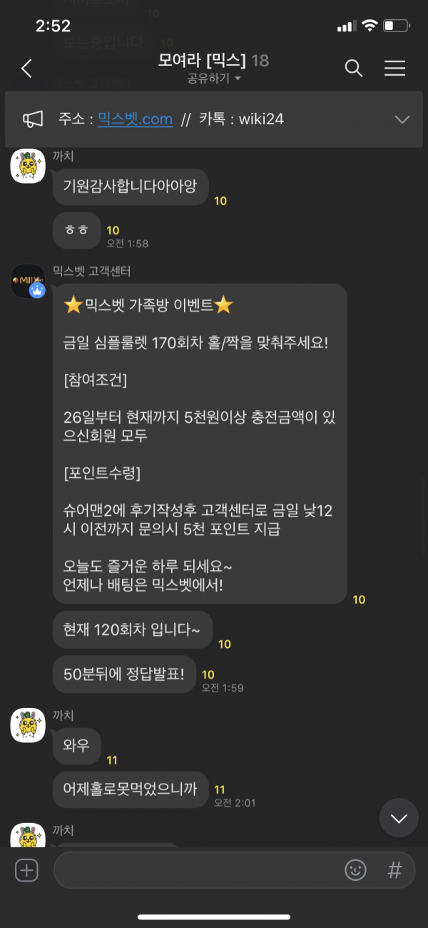 믹스벳 가족방이벤트 당첨을 축하드립니다