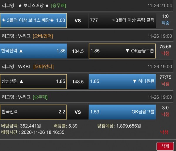 어제 배팅은 나가리되서
