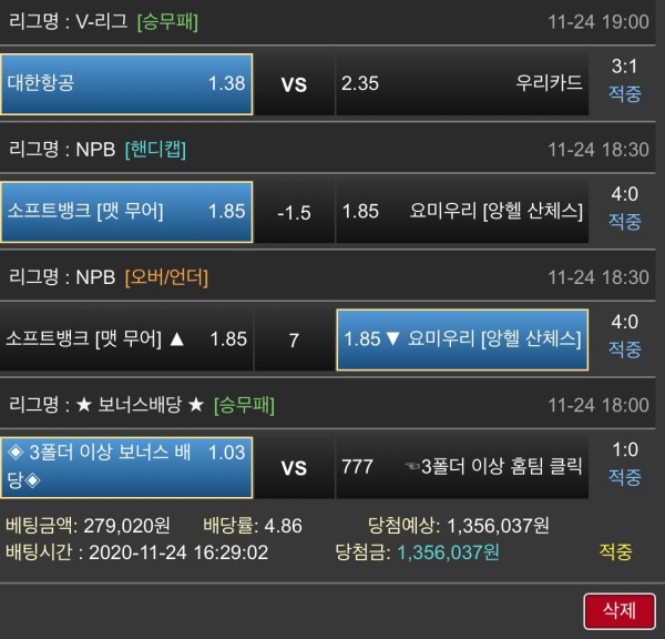 어제 경기들 거의 역대급 정배데이네요!!!