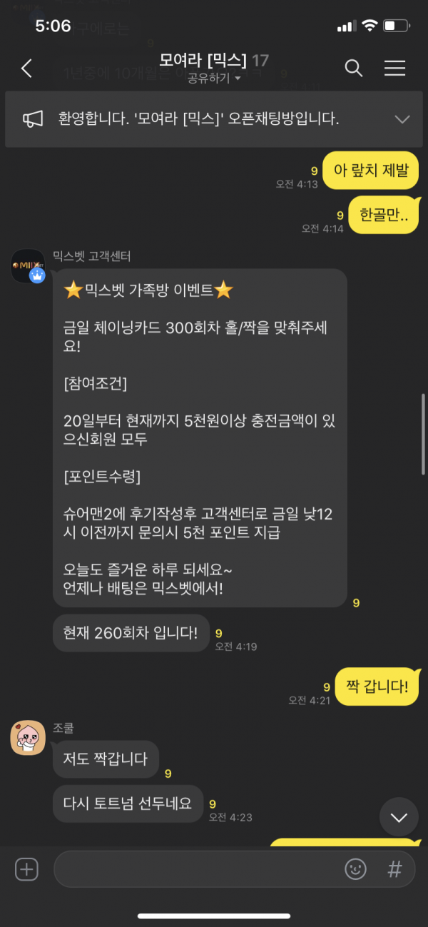 믹스벳 가족방 이벤트 당첨을 축하드립니다!