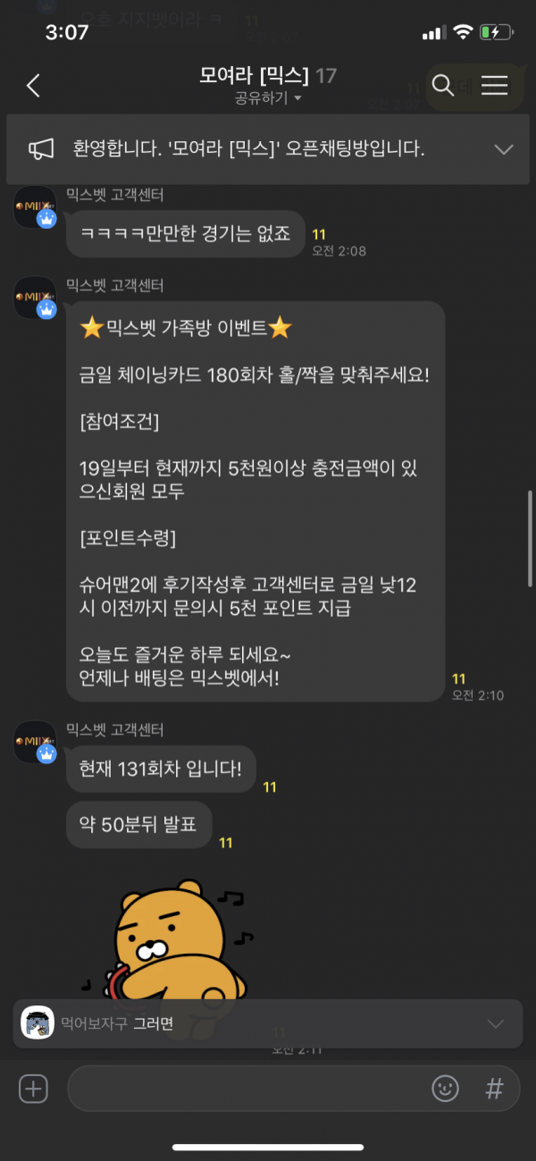 믹스벳 가족방 이벤트 당첨을 축하드립니다!