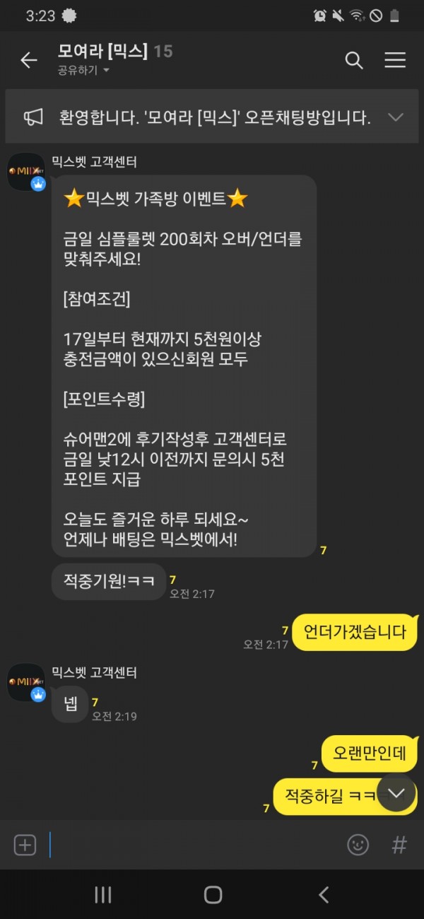 역시 오늘또한 믹스뱃 ㅅㅅ 이벤트적중으러 4시45분경기 가족방분들이랑
