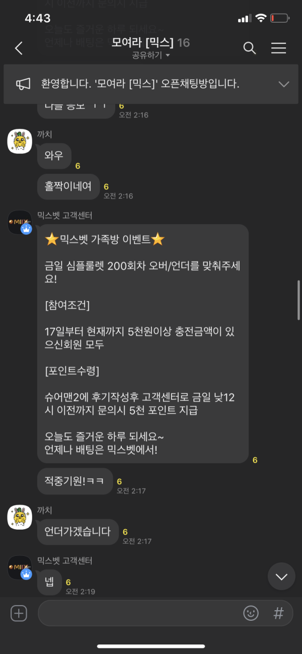 여러분들도 믹스 가족방 들어와서 이벤트 참여해보세용