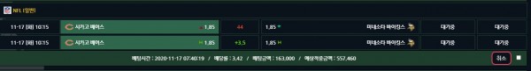 오늘 오전에 있는 미식축구 경기 배팅해봤어요