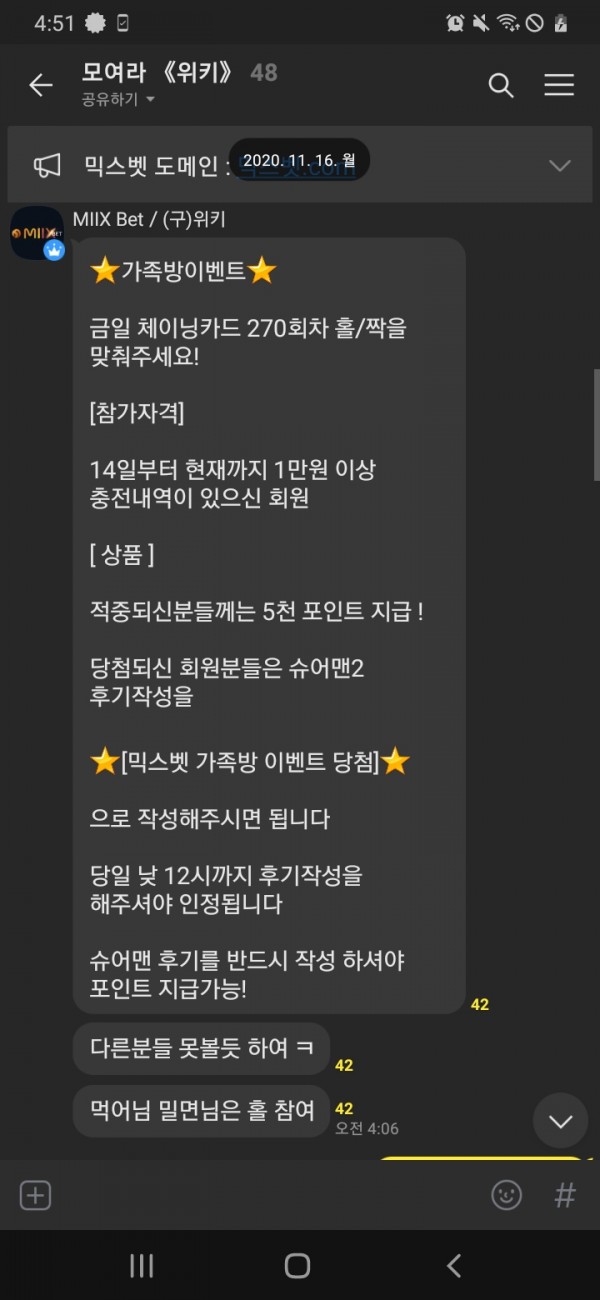 믹스벳 가족방이벤트 당첨을 축하드립니다